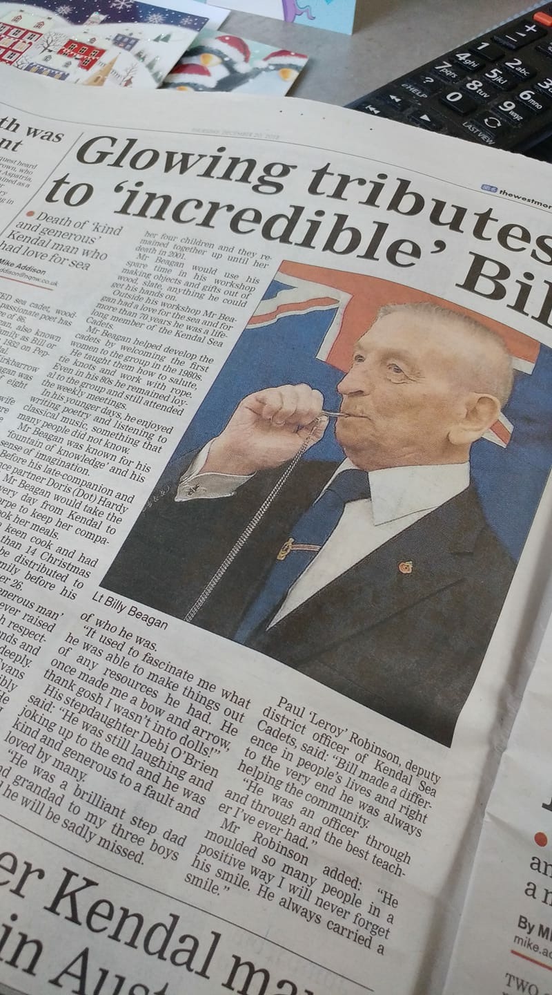 A wonderfully fitting article about Lt Billy Beagan in this week's Westmorland Gazette.