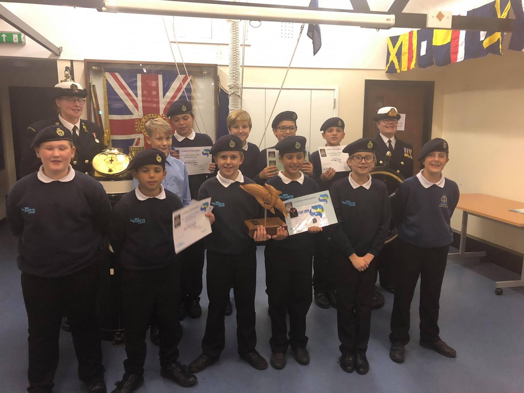Tonight was our Unit Review with the District Officer Lt.Cdr Menhams, she handed out our boating hours certificates and Certificates of Recognition for the Unit's Swimming teams at the District and Area Competitions, 3 xBlue Section Junior Badges and a Competent Crew badge and presented Lt Clifford with his 2nd clasp for his Cadet Forces Medal. Thank you to all the Ship's Company for making the evening a success.