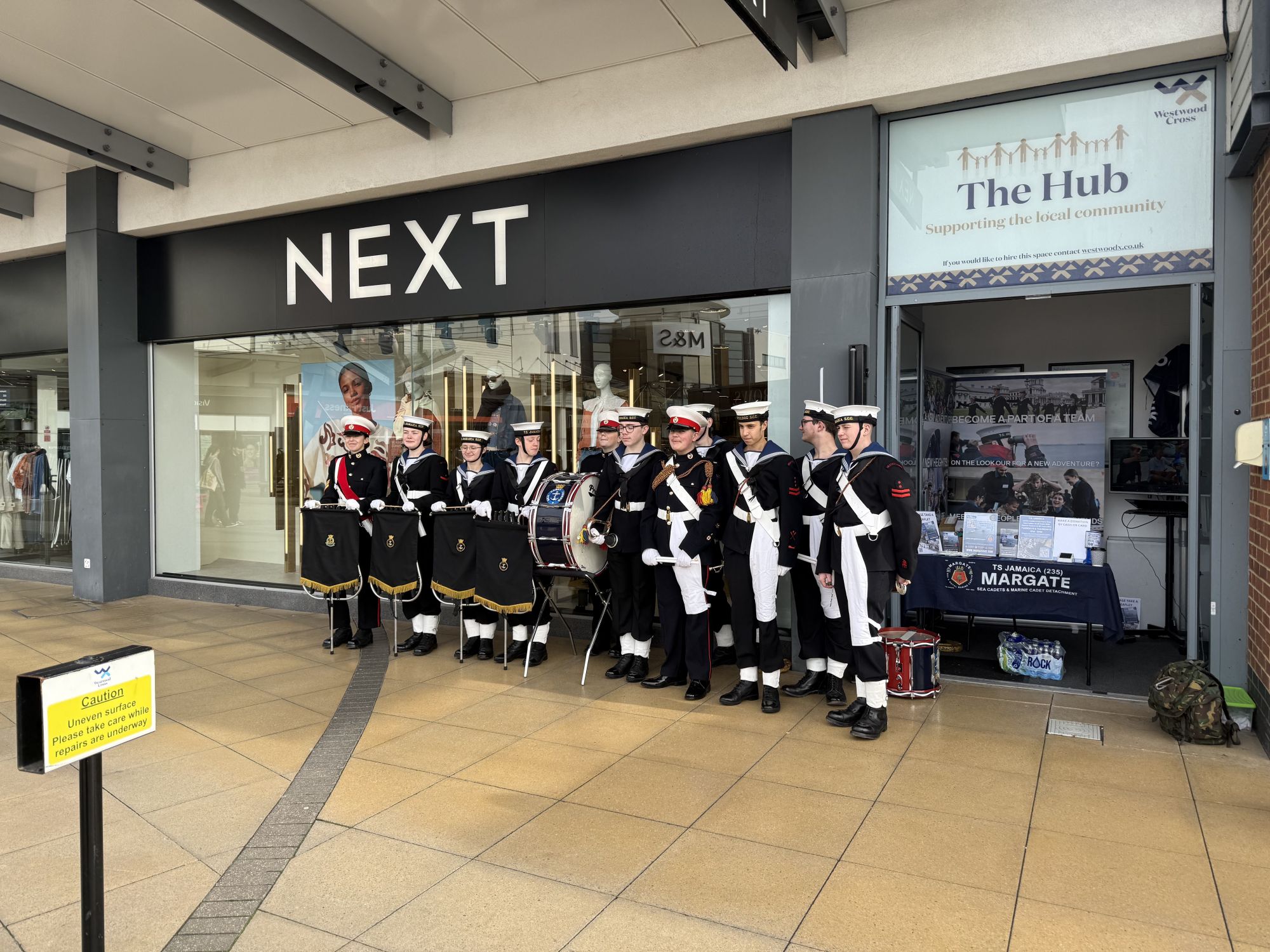 Today, thanks to Westwood Cross, our Unit undertook a Recruitment/Promotional Day, as well as having a Band perform to the delight of shoppers! On behalf of the entire ship's company, we would like to thank the centre staff and shoppers for their kind comments and appreciation. It is really appreciated!