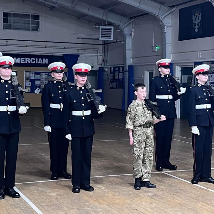 **please note, cadets are taught in the safe handling of rifles during drill training. All weapons seen are parade purpose rifles**